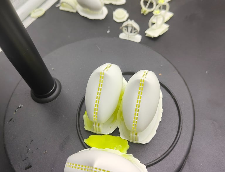 Custom photosensitive resin prints tailored for dental restorations and appliances.